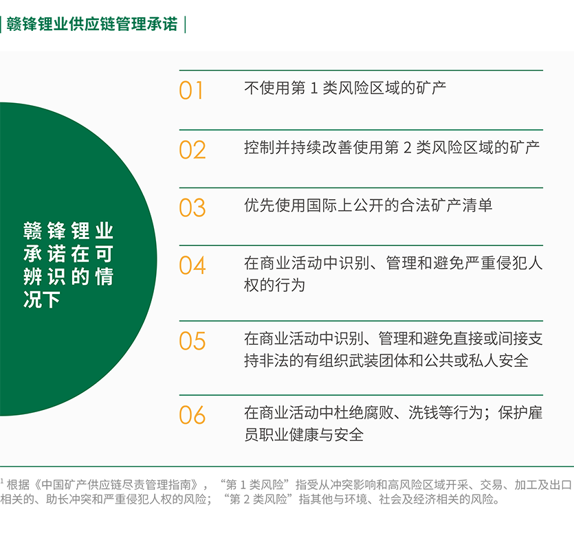 對于生產過程中可能涉及的鋰金屬礦產資源使用情況,公司堅持道德采購,承諾不使用來自沖突地區的礦產資源,也明確要求供應商不得使用來自沖突地區及違反公司政策的礦產資源。為處理負責任礦產供應鏈的風險與隱患,公司常態化沖突礦產專項管理,并根據海內外業務動態不斷進行完善。公司經營人員在澳大利亞、阿根廷、墨西哥、愛爾蘭等地投資參股鋰礦權項目并擔任董事,與其簽訂包銷協議,通過股權與包銷協議的方式,確保礦原材料的來源、運輸路徑明確,達到風險可控、可追溯的目的。