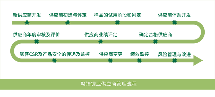 公司遵循《經濟合作與發展組織受沖突影響和高風險區域礦石負責任的供應鏈盡職調查指南(第三版)》《中國對外礦業投資行業社會責任指引》《中國礦產供應鏈盡責管理指南(第二版))等文件,于內部制定了《負責任礦產資源供應鏈管理政策》等文件,并基于政策要求供應商簽署《供應商行為準則》《不使用沖突礦產承諾書》邀請供應商填寫礦物報告、KYS 等調查表,引導和規范上游鋰礦供應商行為,完善鋰供應鏈盡責管理,鼓勵其承擔更多的環境和社會責任。